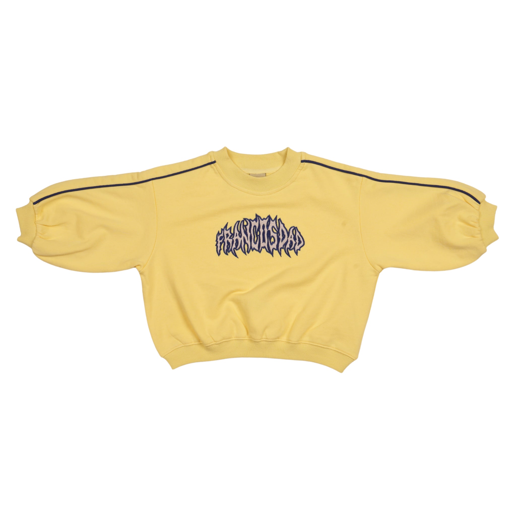 Our essential crew is a mid weight sweater made of cotton french terry. Featuring blue piping and a oversized embroided logo.